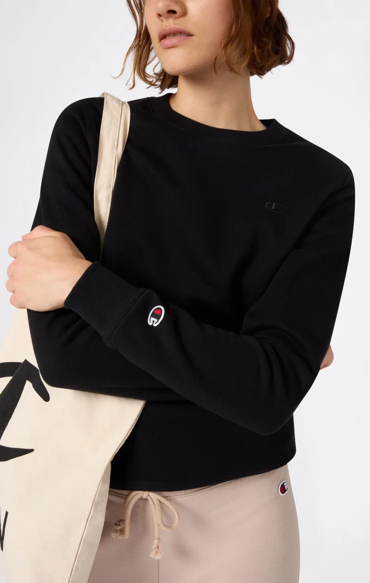 This clean-design crewneck sweatshirt from the Icons line stands out for its tone-on-tone embroidered logo and slim fit that enhances the silhouette. The compact fleece fabric with a brushed interior ensures warmth and softness, perfect for everyday comfort. A timeless piece, to wear alone or layered, with all the authentic Champion spirit.@@@Fabric: Compact and soft cotton-blend fleece 280 g/m² |Composition: 70% Cotton, 30% Polyester |Brushed interior for extra thermal comfort |Ribbed crewneck |Tone-on-tone embroidered logo on the chest |Embroidered C logo on the sleeve |Ribbed cuffs and hem |Fit: Slim Fit – Close-fitting but not tight. Follows the body’s natural shape.