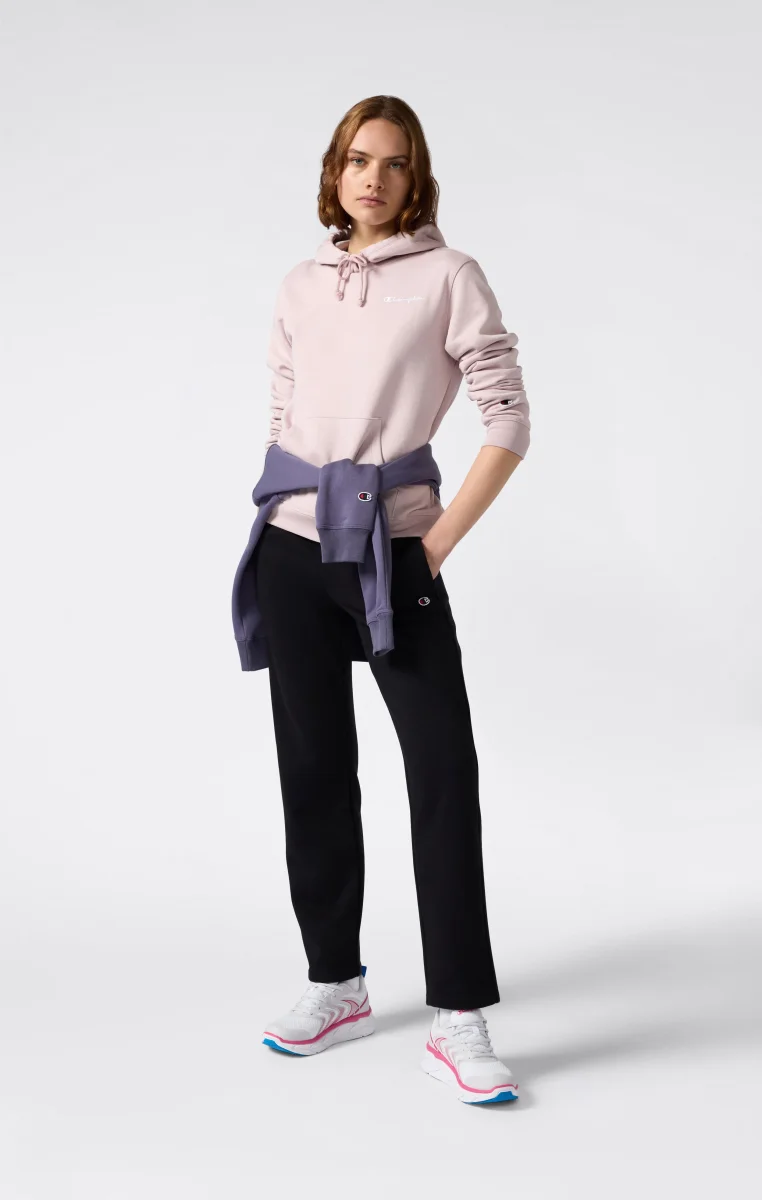 Clean lines and timeless style define this Icons line hoodie, expressing the brand’s most authentic spirit. Made from soft compact fleece with a brushed interior, it is designed to accompany you daily with comfort and a touch of heritage. The tone-on-tone embroidered logo on the chest enhances the garment’s essential and iconic look.@@@Fabric: Compact and soft cotton-blend fleece – 280 g/m² |Composition: 70% Cotton, 30% Polyester |Brushed interior for superior thermal comfort |Drawstring hood |Kangaroo pocket |Embroidered logo |Ribbed cuffs and hem |Tone-on-tone embroidered Champion logo on the chest |Fit: Slim Fit – Close-fitting but not tight, follows the body’s lines