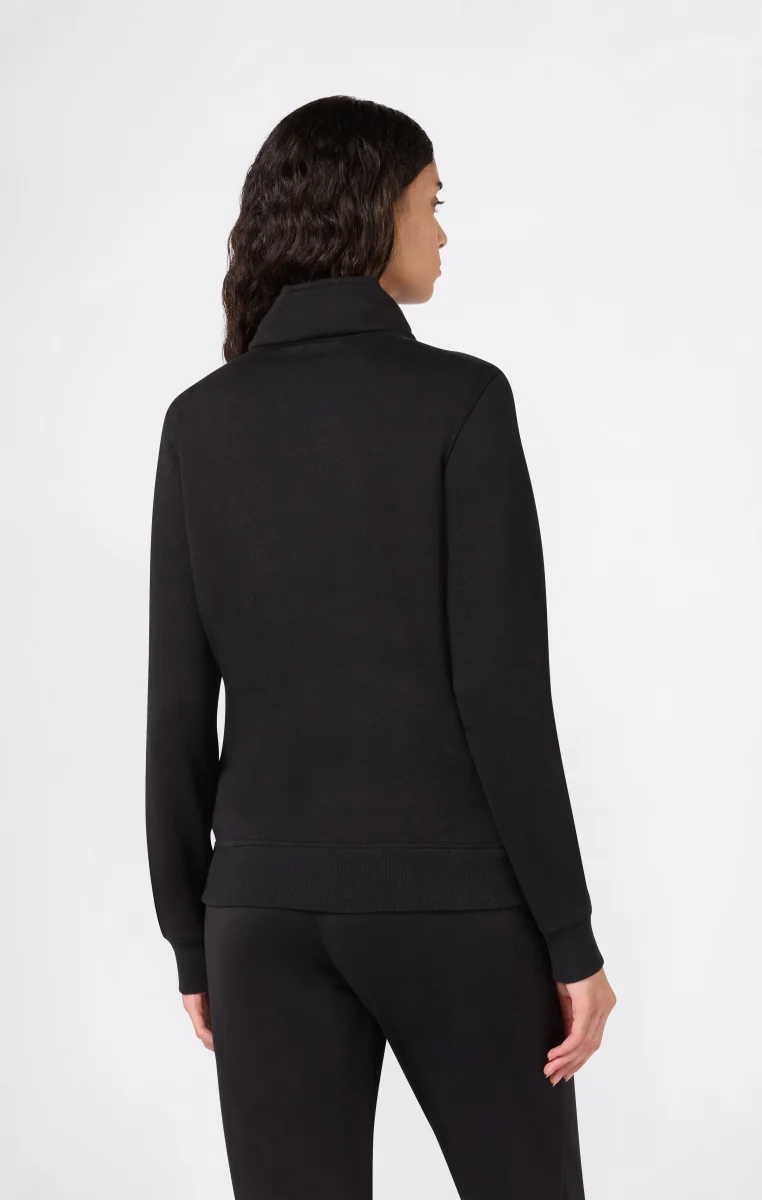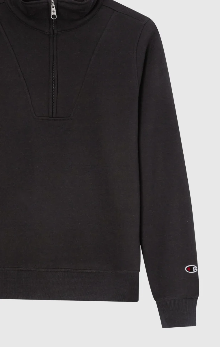 This half-zip sweatshirt from the Icons line is designed for those seeking an essential style with a touch of sporty elegance. The clean cut is enhanced by the high collar and V-shaped front construction, while the tone-on-tone embroidered logo adds a discreet yet distinctive detail. The soft and compact fleece guarantees comfort and definition, while the slim fit naturally follows the body’s lines.@@@Fabric: Compact and soft cotton-blend fleece – 280 g/m² |Composition: 70% Cotton, 30% Polyester |Brushed interior for superior thermal comfort |Tone-on-tone embroidered C logo on the chest |Kangaroo pocket |Drawstring hood |Ribbed cuffs and hem |Embroidered C logo on the sleeve |Fit: Slim Fit – close-fitting but not tight, follows the body’s curves