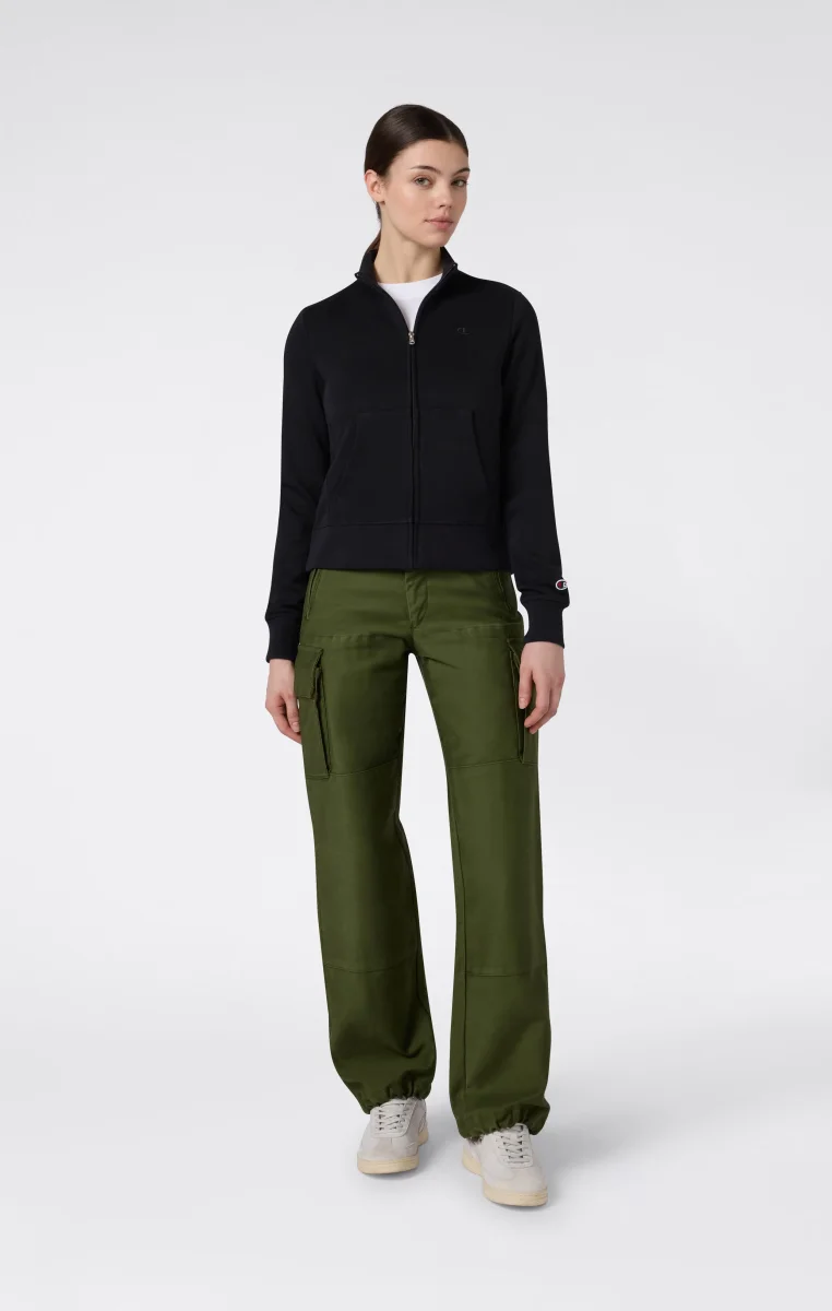 This women’s lightweight full zip sweatshirt is made from Soft Compact Spring Poly Terry, ideal for everyday wear and transitional seasons. The clean design is enhanced by the tonal embroidered Champion “C” logo on the chest, subtle and recognizable. The Slim fit follows the body lines while ensuring comfort and ease of movement.@@@Fit: Slim, close-fitting without being tight, follows the silhouette |Fabric: Soft Compact Spring Poly Terry |Composition: 69% Cotton, 31% Polyester |Weight: 280 g/m² |Lightweight full zip sweatshirt |Unbrushed interior |Tonal embroidered Champion “C” logo on the chest |High collar with full zip |Front pockets |Ribbed cuffs and hem
