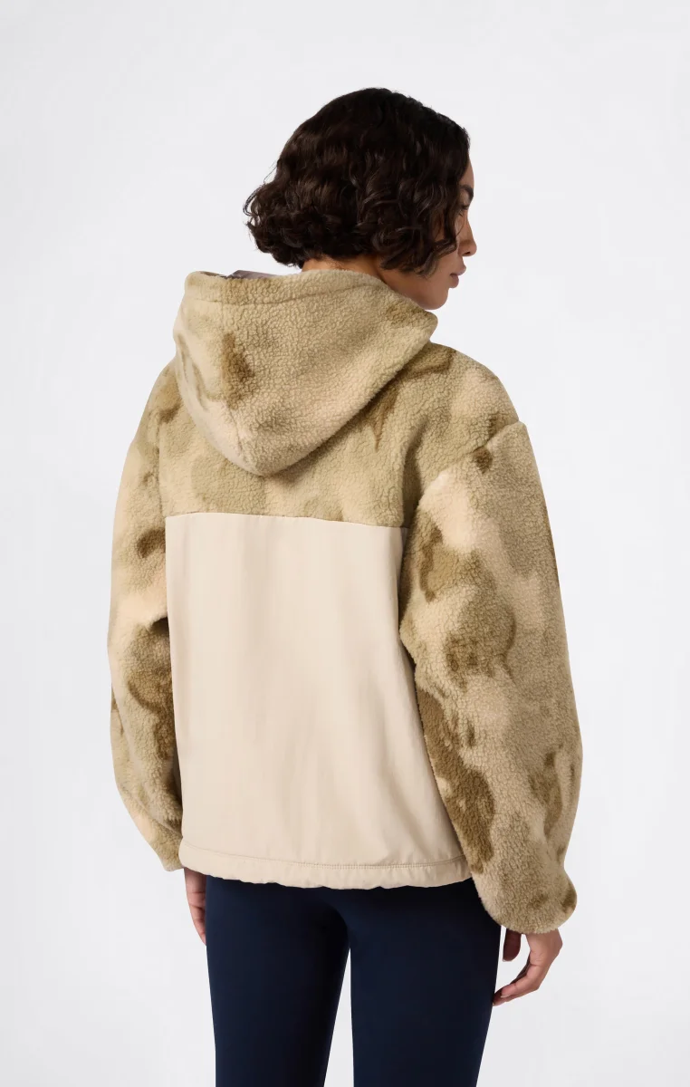 Perfect for facing winter in style, this hoodie is made from ultra-soft polar teddy fleece with a cozy, sherpa-like texture. The outer fabric delivers a warm look, while smooth tone-on-tone inserts add a technical touch. The silhouette is comfortable, featuring a slightly dropped shoulder and a regular fit. Ideal to wear as a mid-layer on colder days.@@@Main fabric: Polar Fleece, weight: 450 g/m² |Composition: 100% Polyester |Second fabric: Crinkle-effect fabric with peached finish, weight: 114 g/m² |Composition: 100% Polyester |Fit: Standard Fit: versatile and comfortable with standard widths and lengths. Close to the body, it has simple lines that do not cling to the shape. Regular shoulder cut.