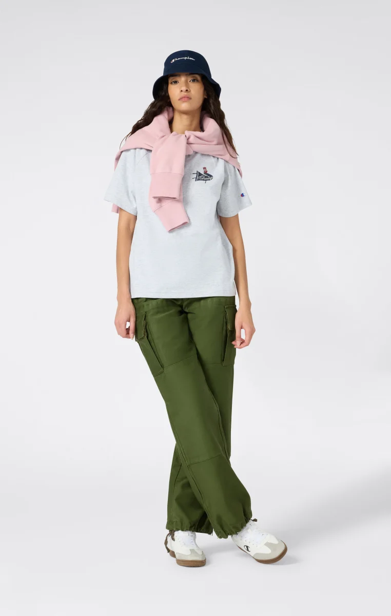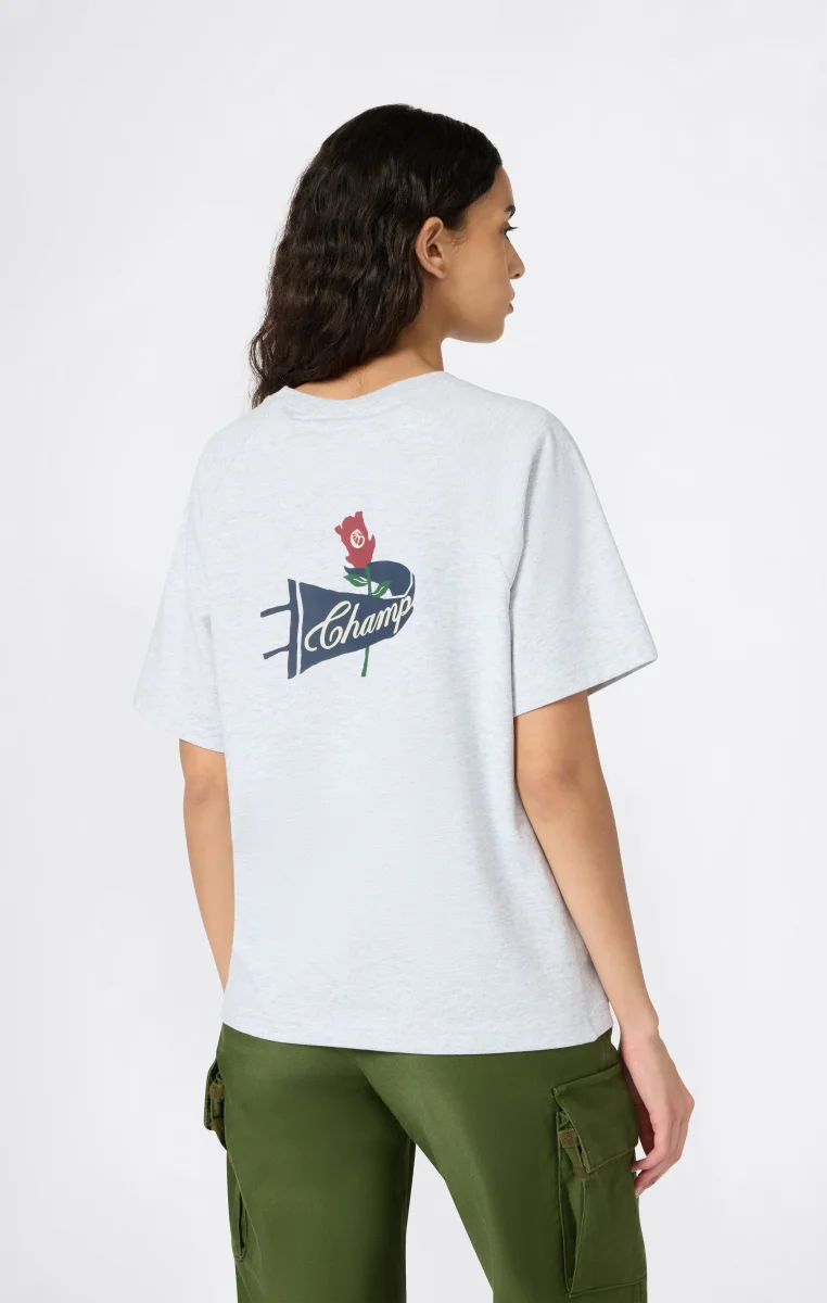 This women’s t-shirt in heavyweight cotton jersey features placed graphics on the front and back for a bold, distinctive touch. With its straight cut and versatile fit, it’s ideal for everyday wear—on its own or layered. Comfort and style meet in a timeless yet characterful piece.@@@Fabric: Heavy jersey 220 g/m² |Composition: 100% Cotton |Graphic print on front and back |Ribbed collar |Embroidered C logo on sleeve |Fit: Standard Fit: Versatile and comfortable fit with standard lengths and widths. Designed to skim the body without clinging. Regular shoulder cut.