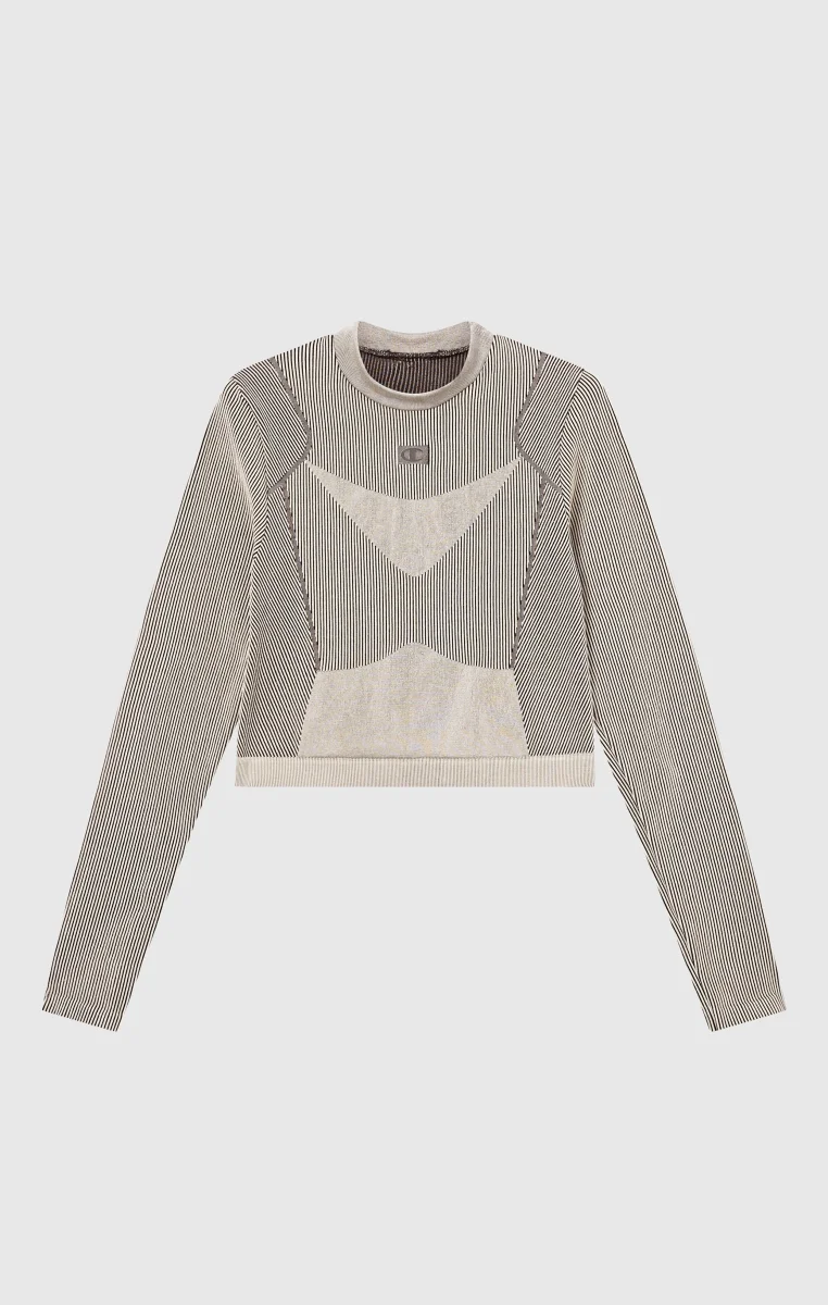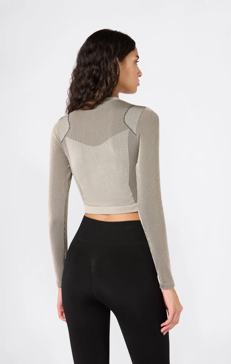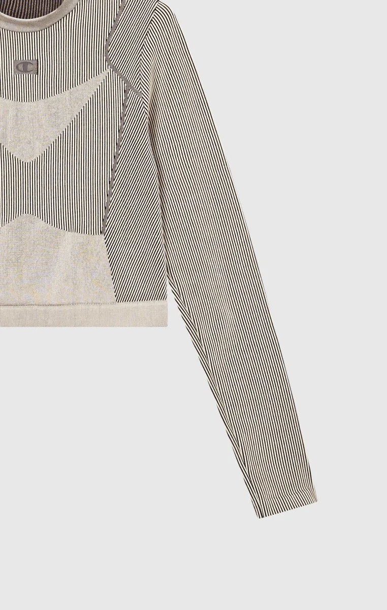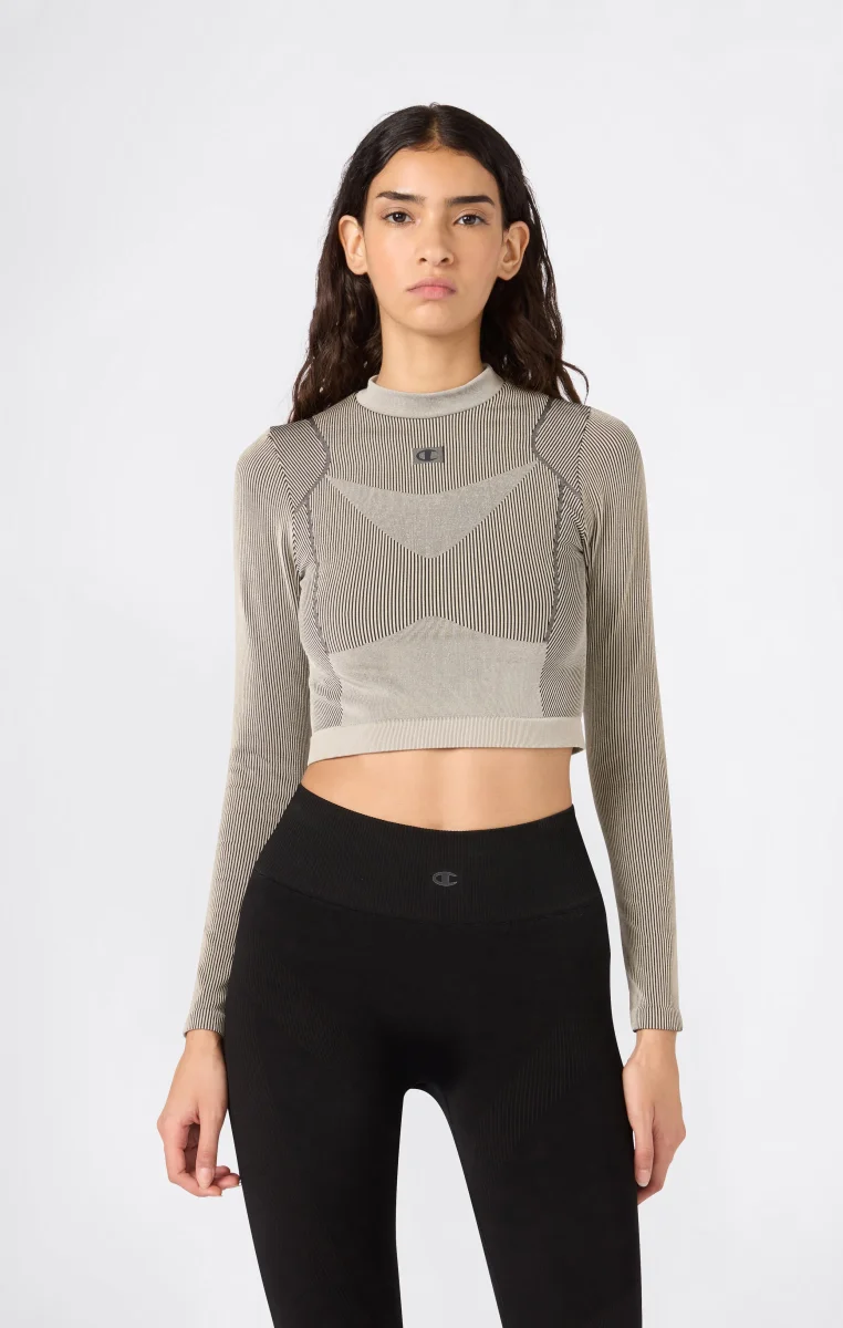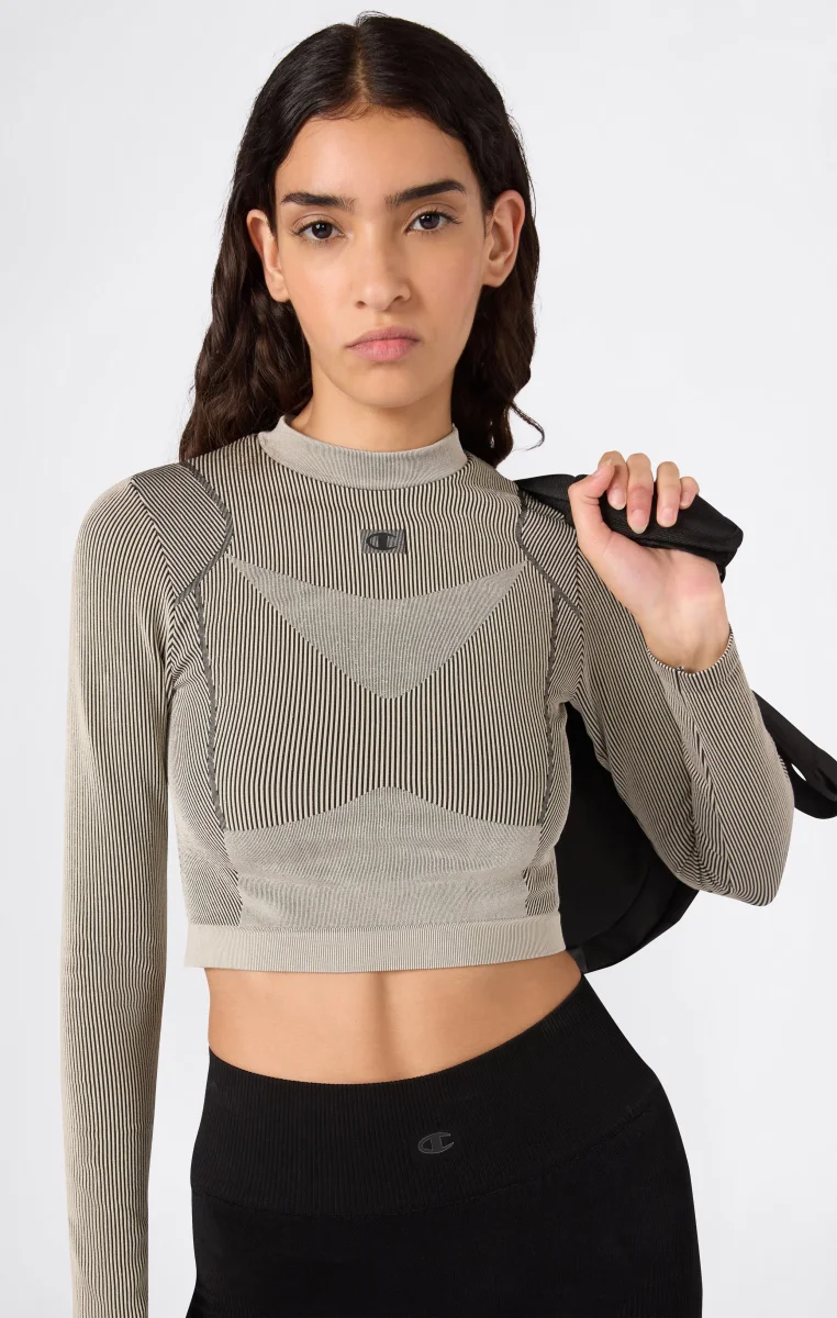 This long-sleeve cropped top is designed to provide freedom of movement and support during training. Its seamless construction, made from tri-blend technical yarn, ensures extreme comfort and zero skin irritation. The fitted design follows the natural body lines, while differentiated structure zones improve breathability and flexibility. An ideal choice for those seeking a lightweight technical garment to wear alone or as a base layer.@@@Seamless |Composition: 54% Polyamide, 35% Polypropylene, 11% Elastane |Seamless structure for maximum comfort |Differentiated knit zones |Fit: Fitted – Body-hugging, perfect as a technical base or single layer.