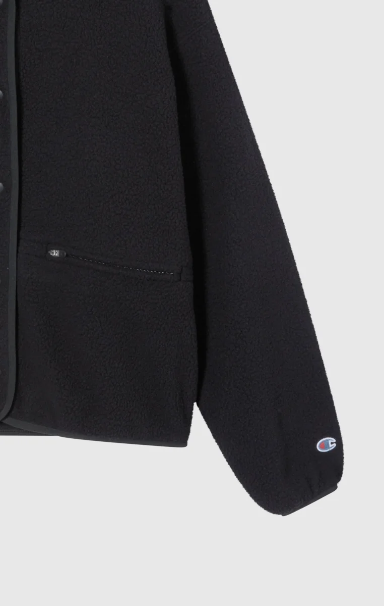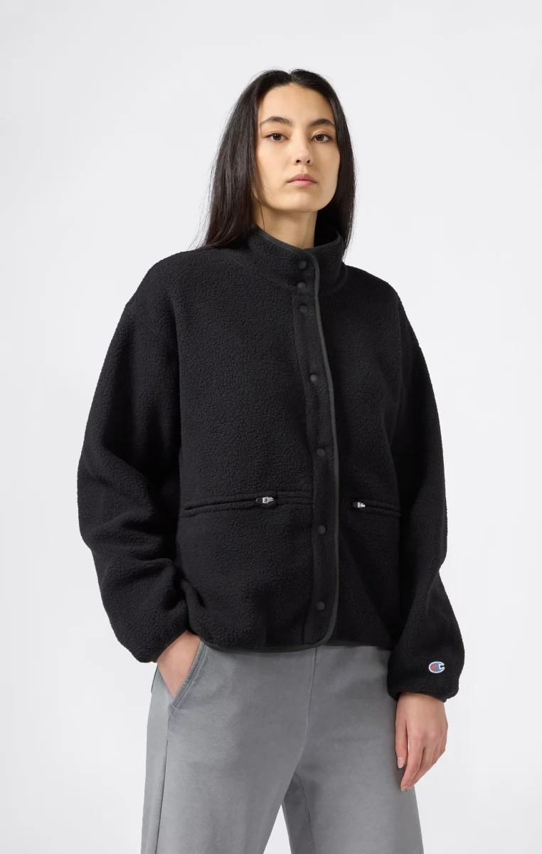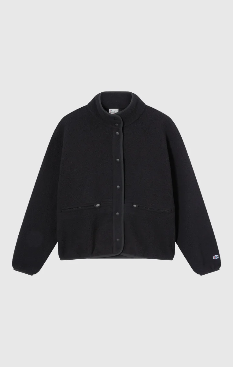 Part of the Time Capsule collection, this teddy fleece jacket reworks the brand’s heritage aesthetic with a contemporary twist. The clean cut and high collar recall retro utility style, while the plush shearling fabric offers warmth and softness with an authentic look. The tone-on-tone snap buttons closure, zip pockets, and standard fit make it a versatile and iconic piece true to Champion’s spirit.@@@Fabric: Teddy fleece with plush effect – 260 g/m² |Composition: 100% Polyester |Tone-on-tone snap buttons |Front zip pockets |High collar |Embroidered C logo on the sleeve |Fit: Standard Fit – versatile and comfortable fit with standard width and length. Skims the body with simple lines and a regular shoulder cut.