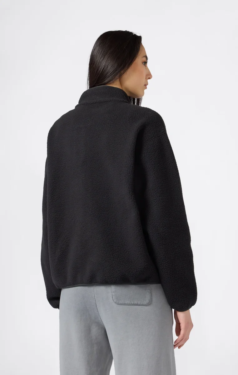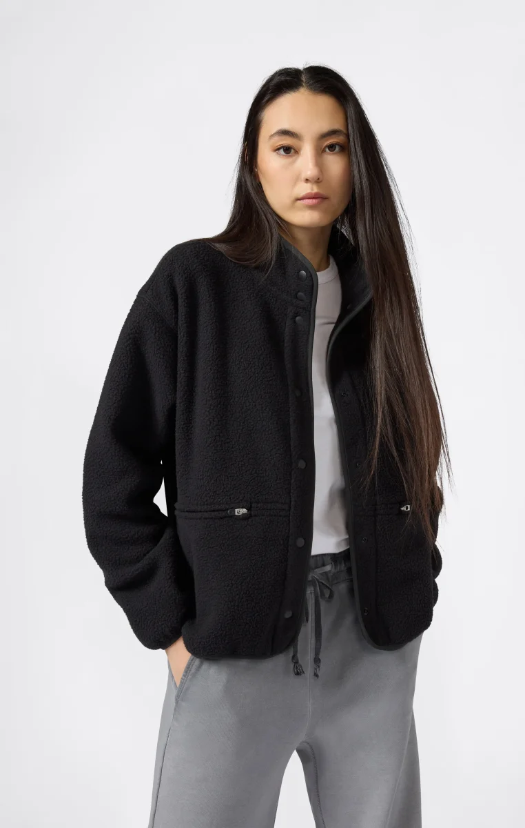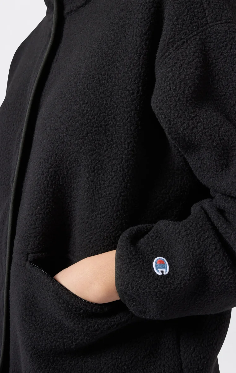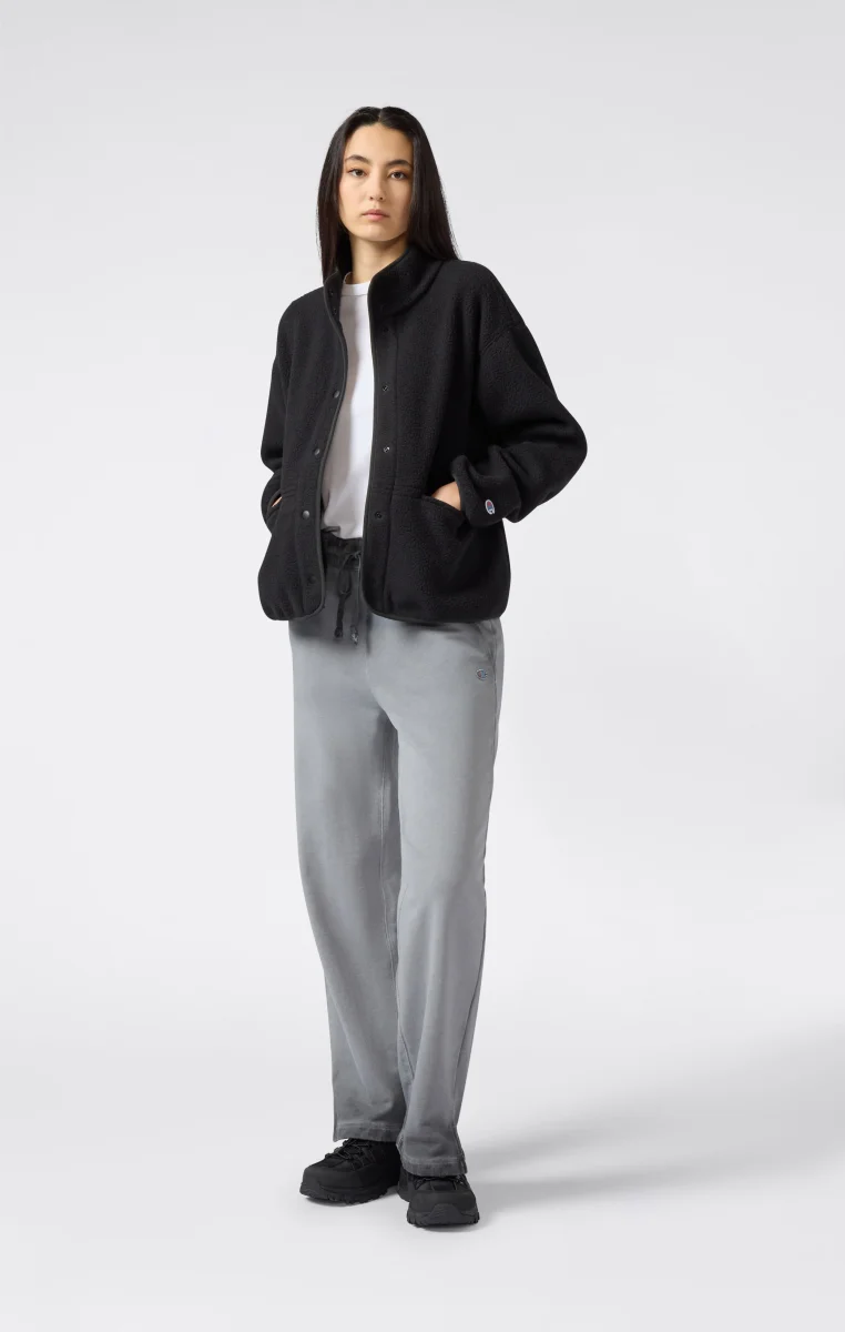 Part of the Time Capsule collection, this teddy fleece jacket reworks the brand’s heritage aesthetic with a contemporary twist. The clean cut and high collar recall retro utility style, while the plush shearling fabric offers warmth and softness with an authentic look. The tone-on-tone snap buttons closure, zip pockets, and standard fit make it a versatile and iconic piece true to Champion’s spirit.@@@Fabric: Teddy fleece with plush effect – 260 g/m² |Composition: 100% Polyester |Tone-on-tone snap buttons |Front zip pockets |High collar |Embroidered C logo on the sleeve |Fit: Standard Fit – versatile and comfortable fit with standard width and length. Skims the body with simple lines and a regular shoulder cut.