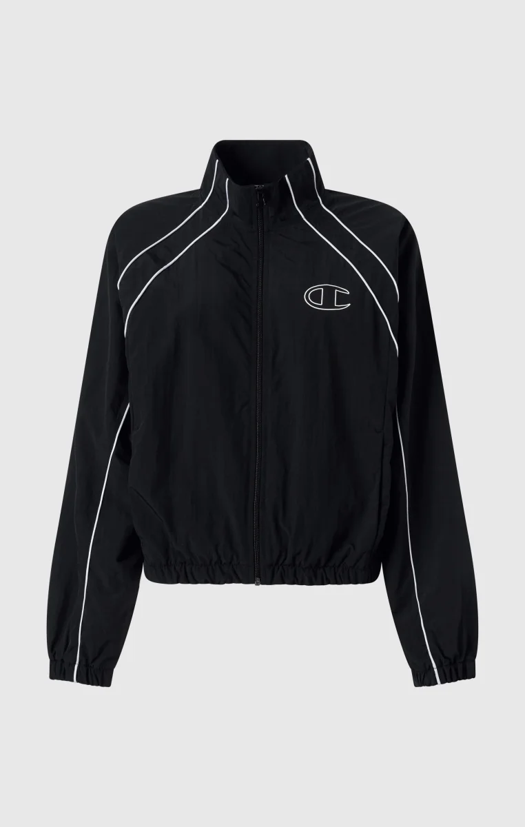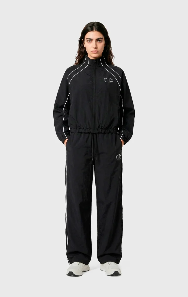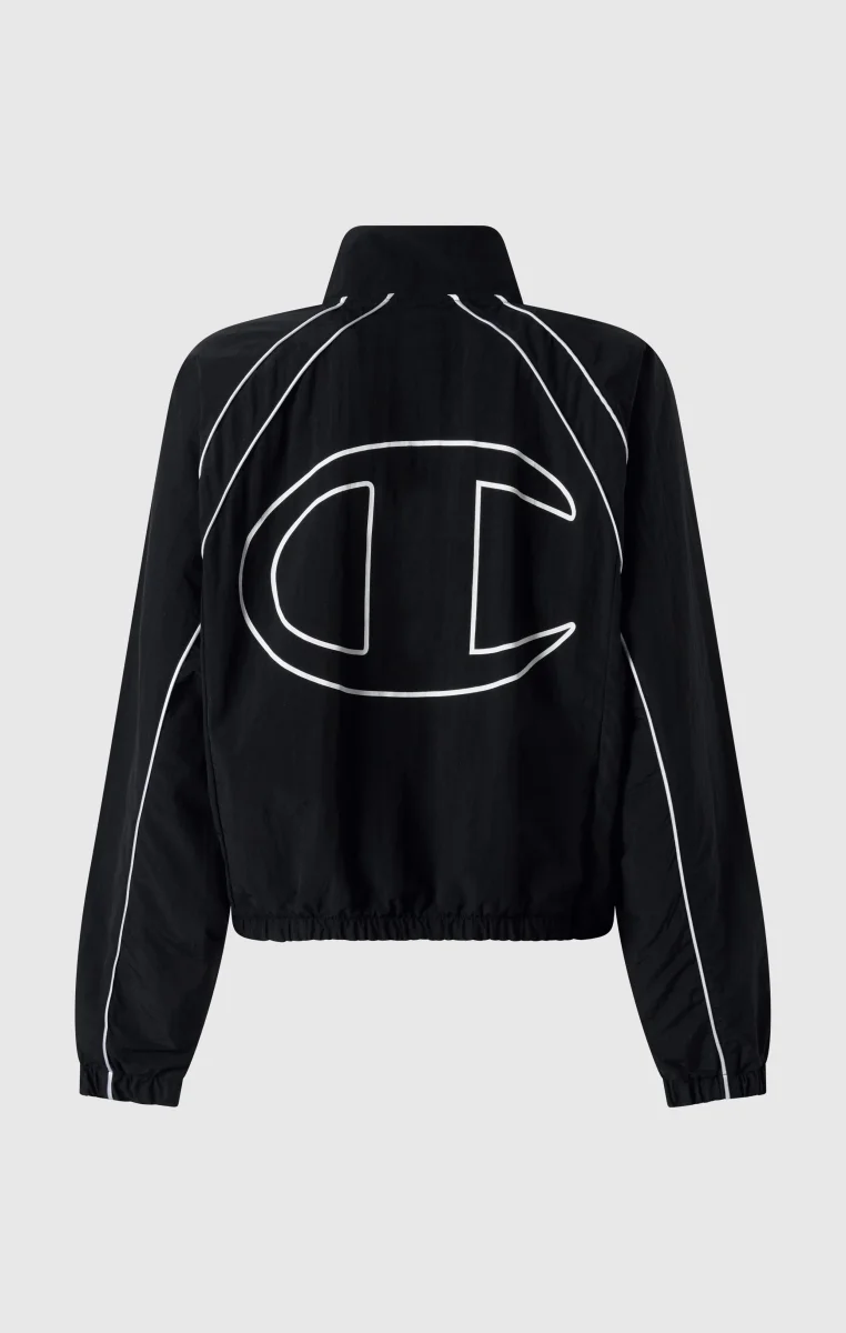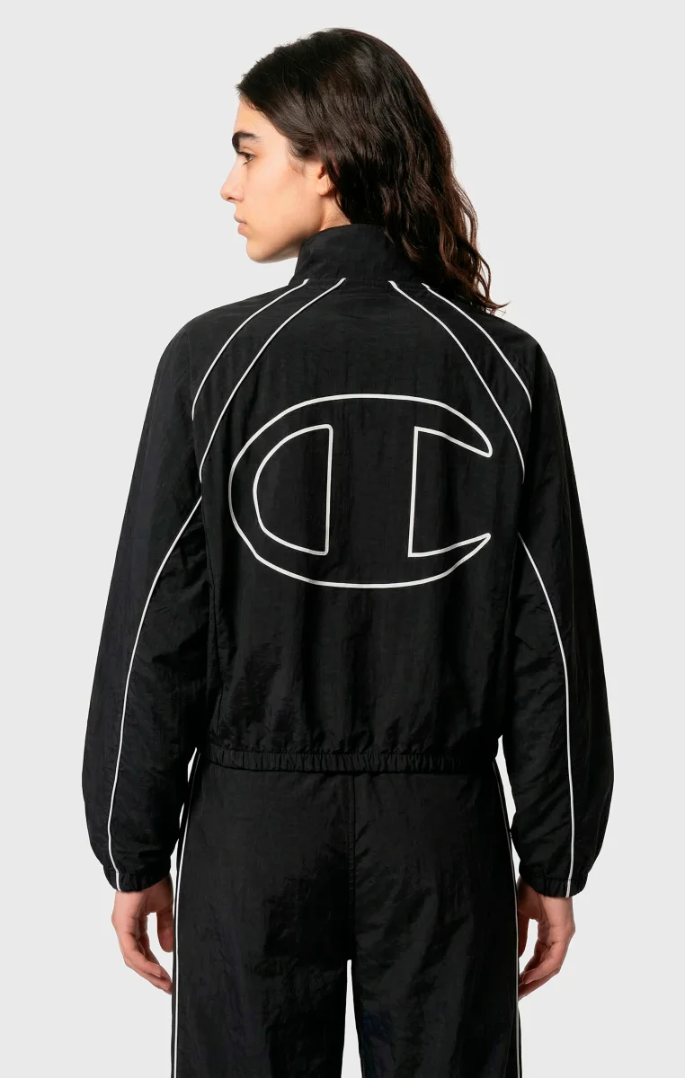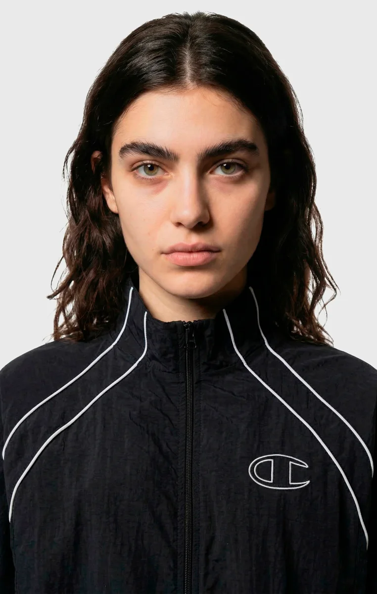 This full-zip track top blends urban style with sports functionality in a bold, distinctive piece. Made from lightweight nylon with a crinkled effect, it offers durability and comfort for every occasion. The loose fit with dropped shoulders and wide sleeves ensures freedom of movement and a modern look, while the contrast details and oversized back logo highlight its sporty spirit. A versatile and impactful piece, perfect for training and leisure.@@@Fabric: Light Woven Nylon 115 gr |Composition: 100% polyamide |Loose Fit: Relaxed fit with dropped shoulders, wide sleeves, and regular length |Crinkle-effect design for a technical and contemporary look |Oversized back logo and embroidered logos for an iconic style |Contrast details for a bold, athletic-inspired look