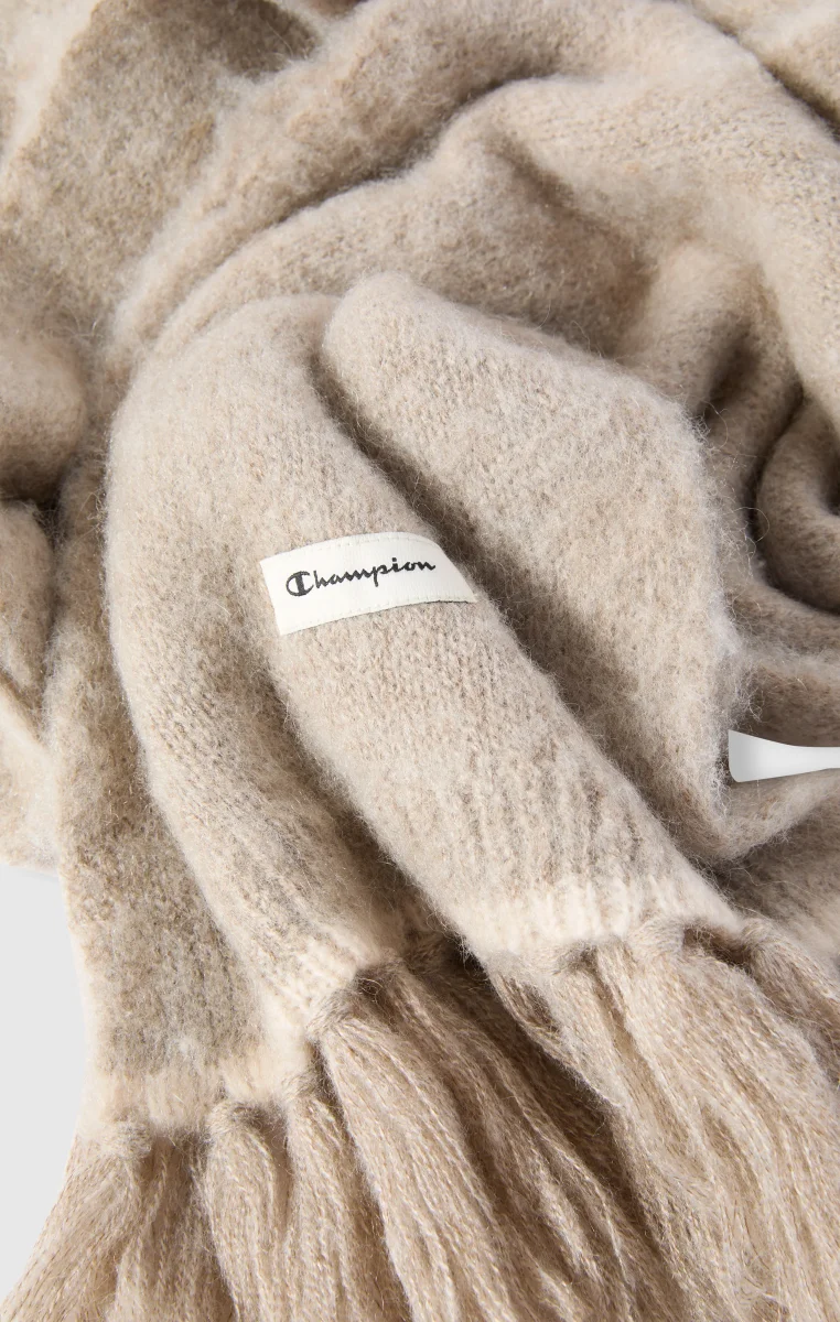 This wool, mohair, and acrylic blend scarf is the perfect accessory to complete your winter looks with a refined touch. Soft, cozy, and featuring a fluffy weave with fringes at the ends, it is enriched with a discreetly sewn label on the front that signs the style subtly.@@@Fabric: Acrylic, wool, and mohair blend yarn |Composition: 45% Acrylic, 41% Nylon, 12% Wool, 2% Mohair |Dimensions: 30 cm (width) x 190 cm (height)