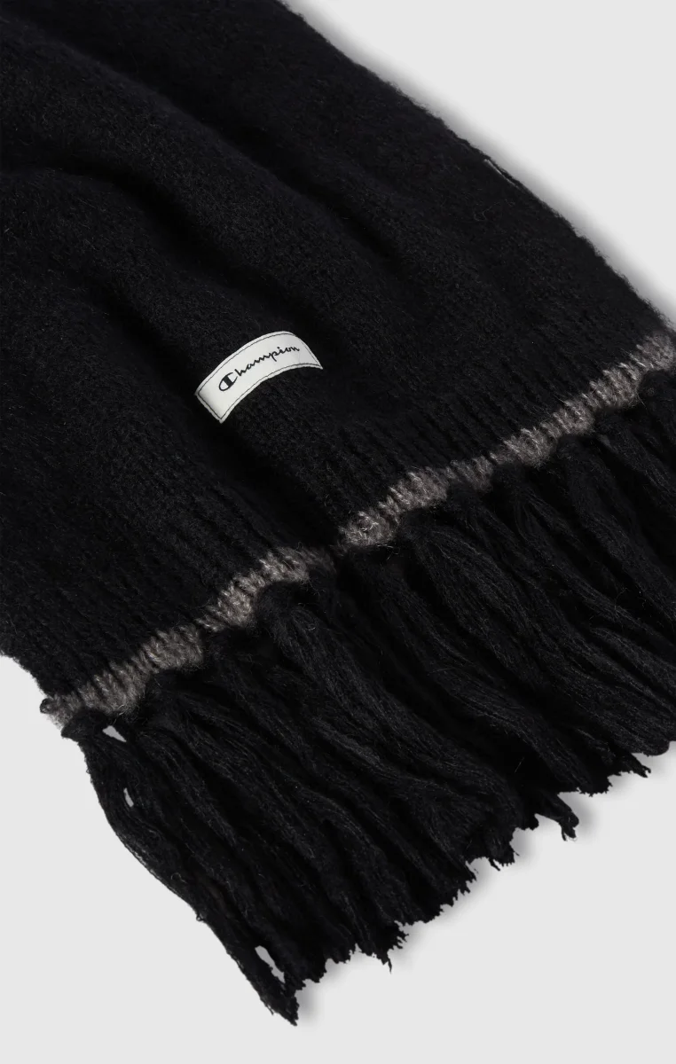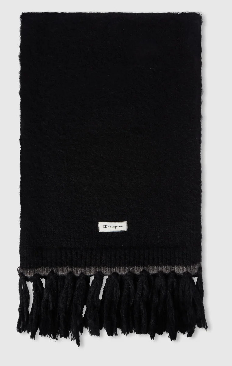 This wool, mohair, and acrylic blend scarf is the perfect accessory to complete your winter looks with a refined touch. Soft, cozy, and featuring a fluffy weave with fringes at the ends, it is enriched with a discreetly sewn label on the front that signs the style subtly.@@@Fabric: Acrylic, wool, and mohair blend yarn |Composition: 45% Acrylic, 41% Nylon, 12% Wool, 2% Mohair |Dimensions: 30 cm (width) x 190 cm (height)