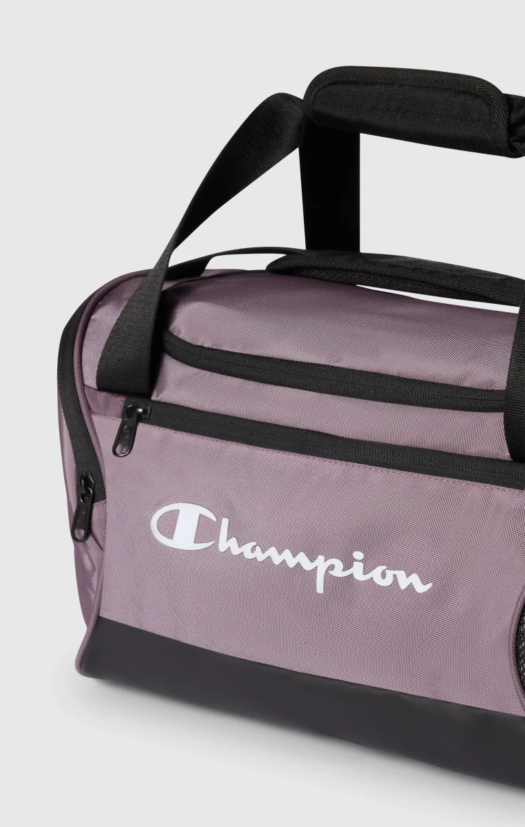 This compact Champion duffel is the ideal solution for the gym or short trips. Made from 280 g/m² water-repellent polyester, it offers optimal organization with functional compartments: inner pocket, front zip pocket, side shoe compartment and mesh side pocket. The 20L compact design is completed with practical details and sporty style.@@@Composition: 100% Polyester |Weight: 280 g/m² |Water-repellent treatment |Compartments: inner pocket, front zip pocket, side shoe pocket, mesh side pocket |Zip closure |Dimensions: 38×24×29 cm |Capacity: 20 litres