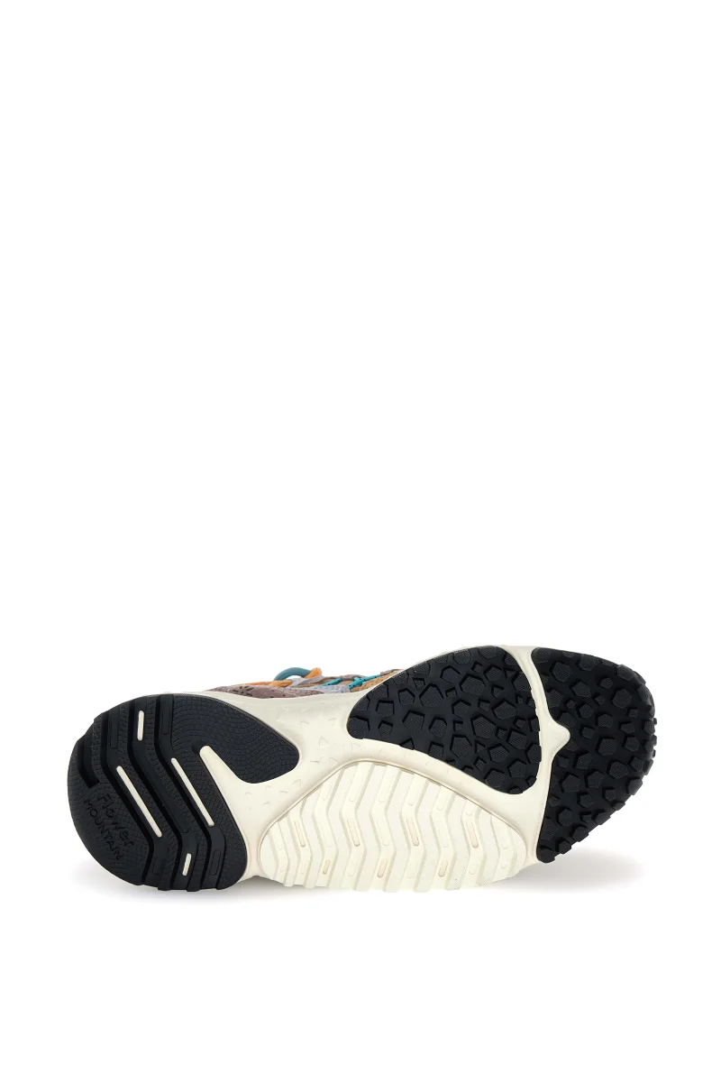 Sneaker in tessuto tecnico con inserti in suede multicolor. Occhielli rinforzati e lacci trek. Soletta interna in sughero naturale antibatterico, fondo in gomma ultra leggera con battistrada dentellato.