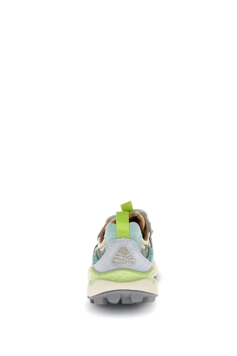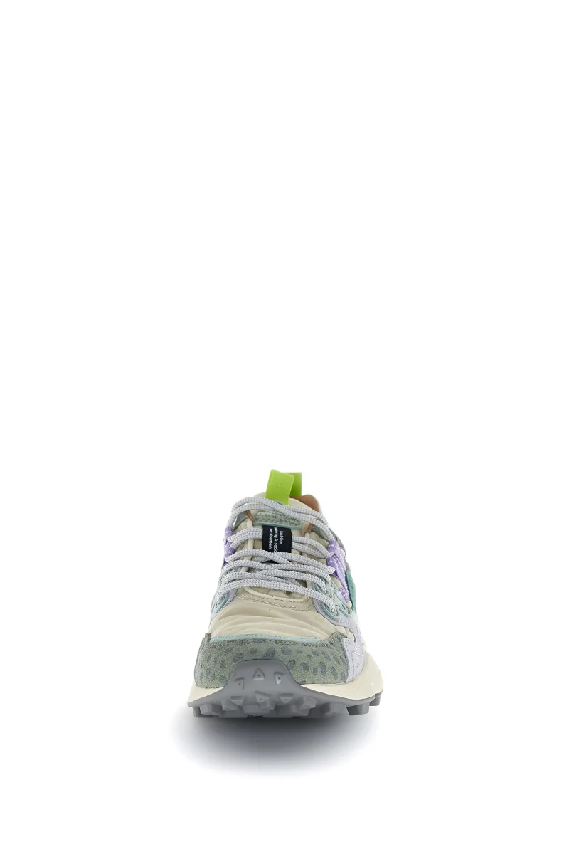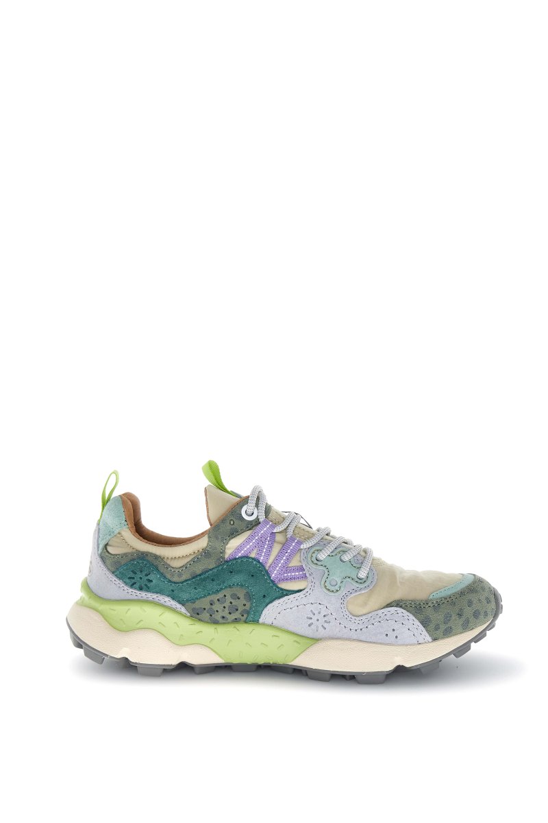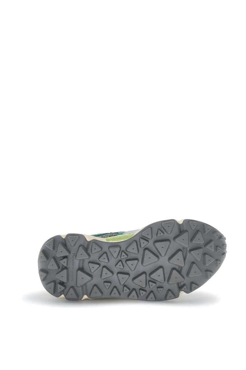 Sneaker in tessuto tecnico con inserti in suede multicolor. Occhielli rinforzati e lacci trek. Soletta interna in sughero naturale antibatterico, fondo in gomma ultra leggera con battistrada dentellato.